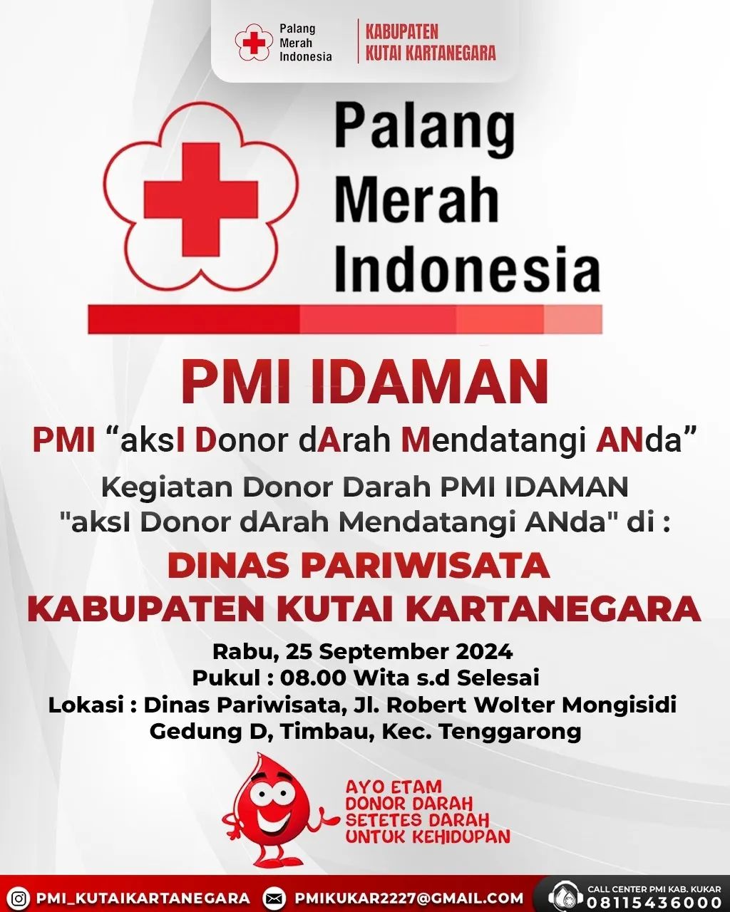 Tempat : Dinas Pariwisata, Jl. Robert Wolter Monginsidi, Gedung D, Timbau, Kec. Tenggarong