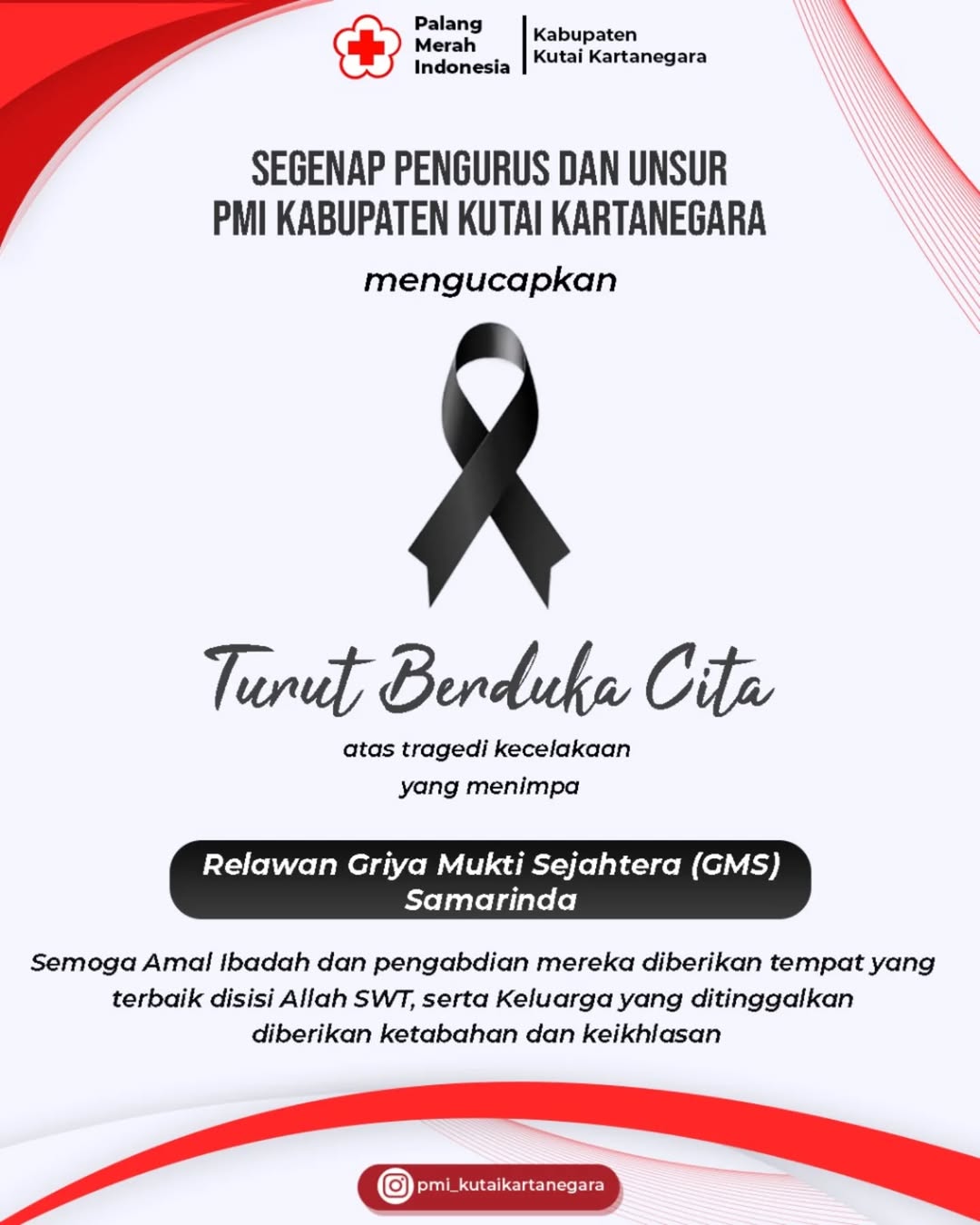 Segenap Pengurus dan Unsur Palang Merah Indonesia Kabupaten Kutai Kartanegara menyampaikan ucapan turut berduka cita yang sedalam-dalamnya atas tragedi kecelakaan yang menimpa