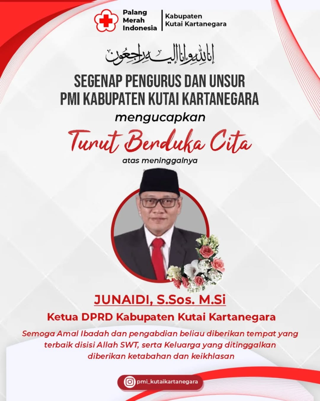 Segenap Pengurus dan Unsur Palang Merah Indonesia Kabupaten Kutai Kartanegara menyampaikan ucapan turut berduka cita yang sedalam-dalamnya atas meninggalnya