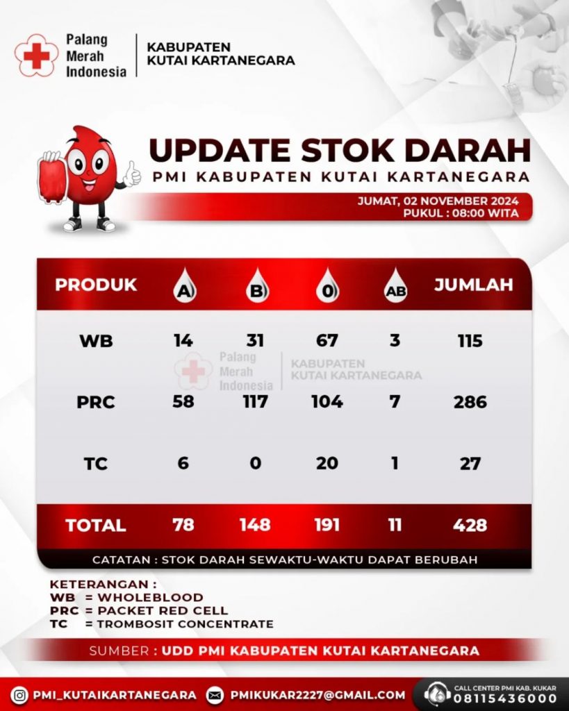 UPDATE STOK DARAH PMI KABUPATEN KUTAI KARTANEGARA