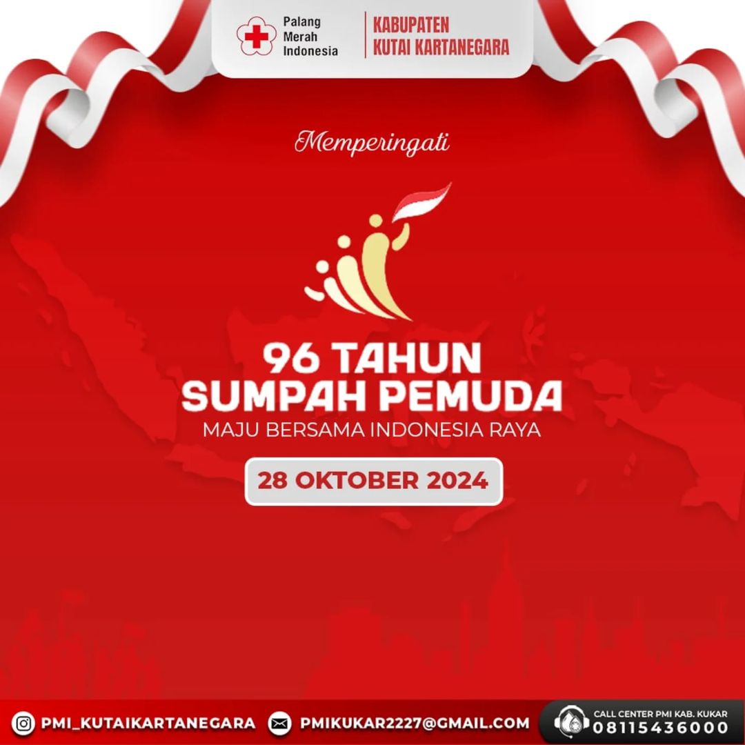 Palang Merah Indonesia Kabupaten Kutai Kartanegara mengucapkan Selamat Memperingati Sumpah Pemuda Ke-96 Tahun, 28 Oktober 2024.