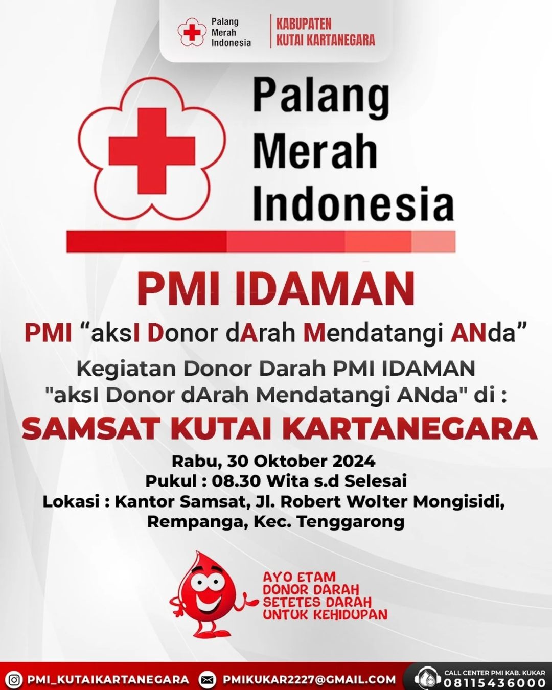 Kegiatan Donor Darah PMI IDAMAN “aksl Donor dArah Mendatangi ANda” SAMSAT KUTAI KARTANEGARA