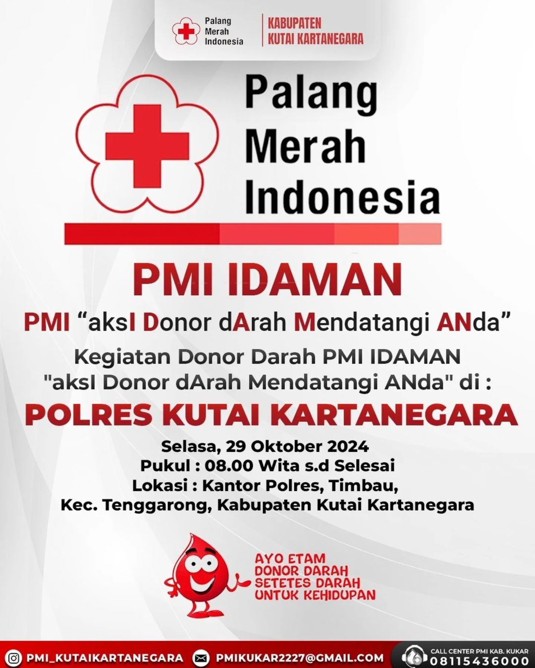 Kegiatan Donor Darah PMI IDAMAN “aksl Donor dArah Mendatangi ANda” POLRES KUTAI KARTANEGARA