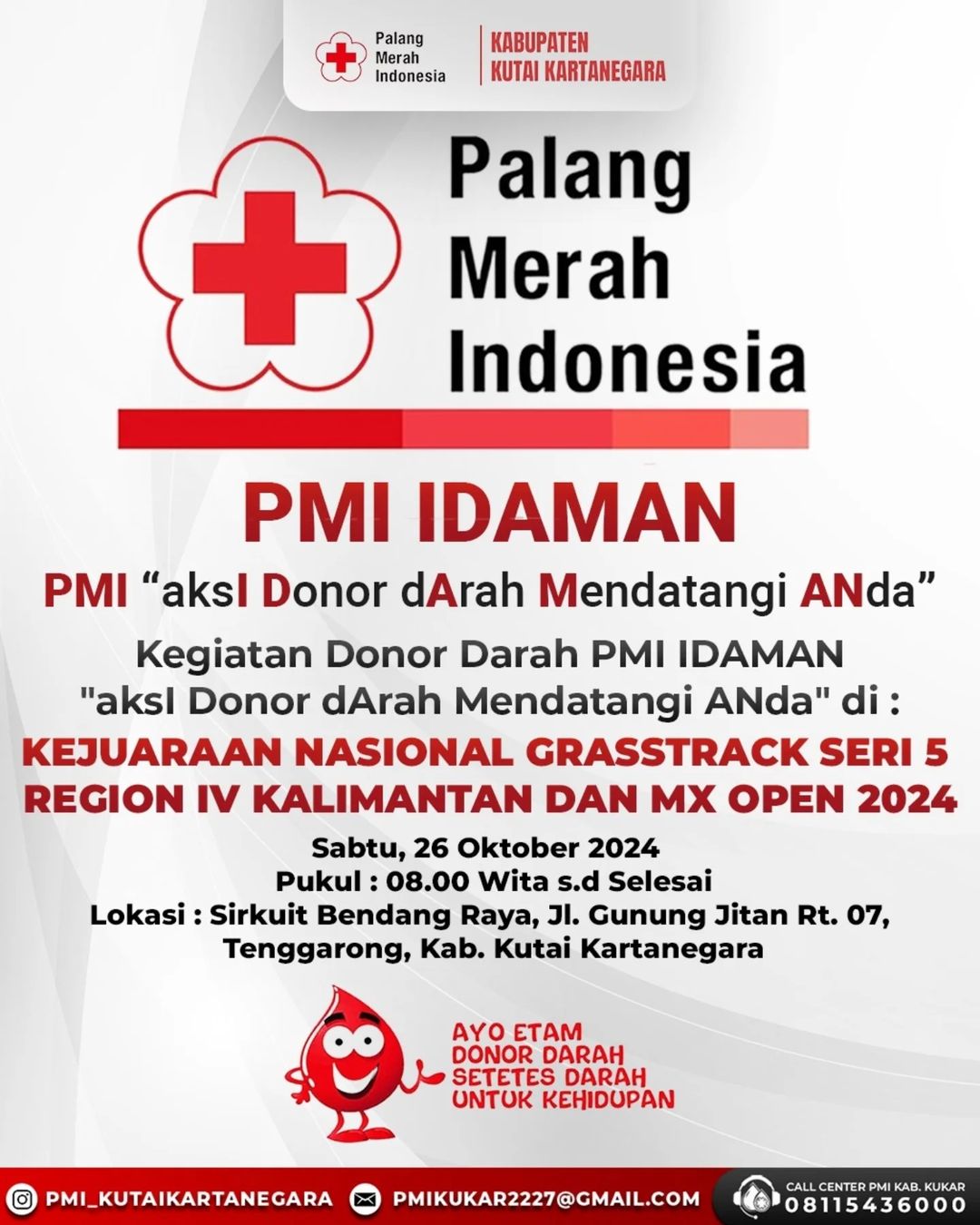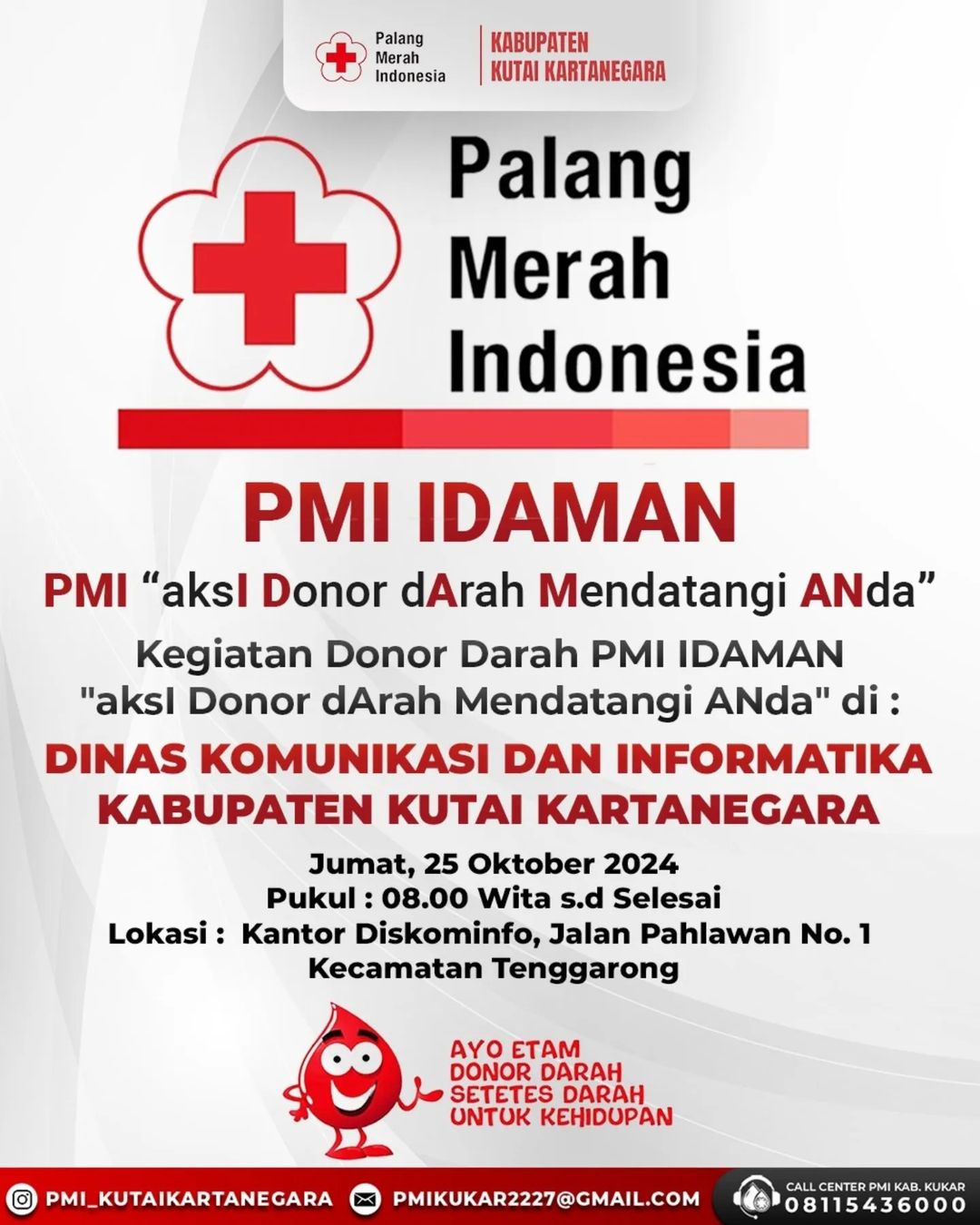Bagi yang akan mendonorkan darahnya agar bisa datang langsung ke Unit Donor Darah (UDD) PMI Kab. Kutai Kartanegara