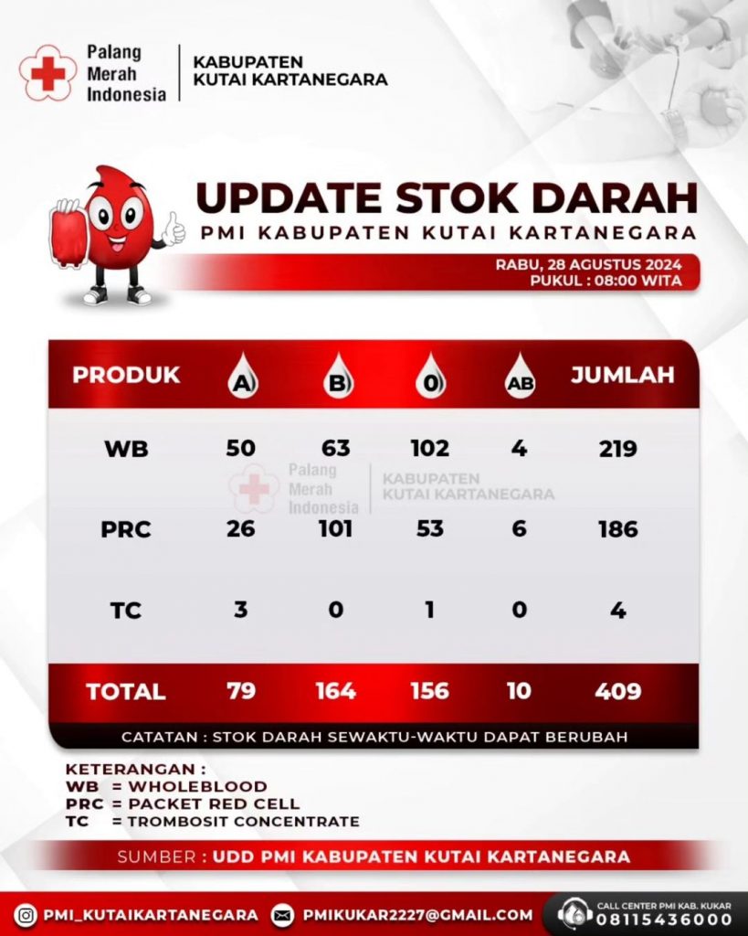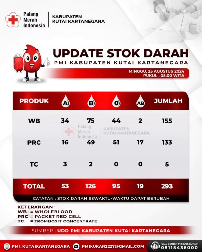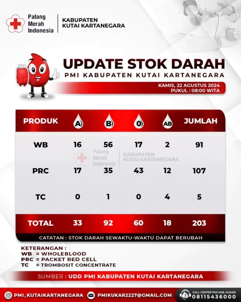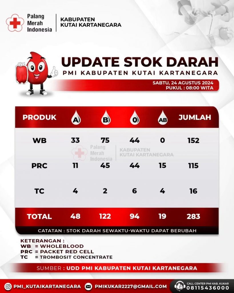 UPDATE STOK DARAH PMI KABUPATEN KUTAI KARTANEGARA